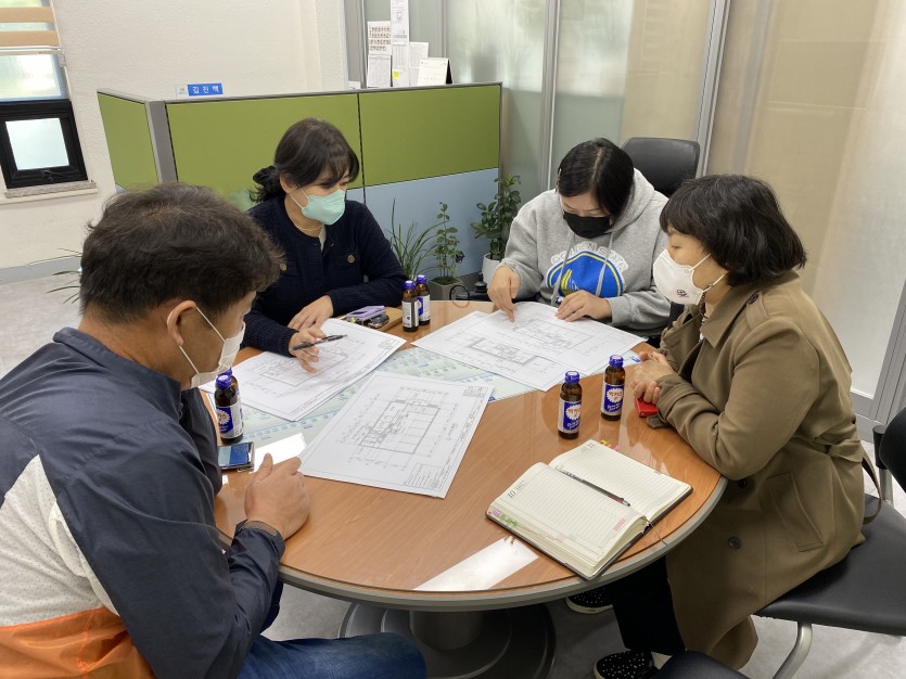 10월 11일 오전 10시 소담IL센터 활동가들과 수원만석전시관 담당자는 엘리베이터 1차 설계도면이 나와 회의를 진행했다.