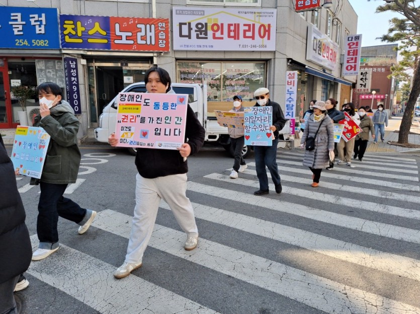 0310 지역사회 캠페인 - 수원시립만석전시관 편 페이지 정보 작성자 소담센터 댓글 1건 조회 14회 작성일 26-03-13 14:17 본문 지역사회 캠페인과 함께 지역작가들의 작품을 참관하며 권익옹호 활동과 문화예술 향유의 귀중한 시간을 가져보았습니다. 목록 이전글0313 장애인식개선메뉴얼 (권리웹툰)-2회 26.03.13 다음글0319 텃밭가꾸기 공유냉장고 기부 1회 26.03.13 댓글목록 댓글목록 김기태님의 댓글 김기태 작성일 26-03-13 21:43 만석공원에서 그림작품을 보았다 단체 사진 찍어다 그리고 권리중심 일자리 홍보하고 나섰다 답변 삭제 만석공원에서 그림작품을 보았다 단체 사진 찍어다 그리고 권리중심 일자리 홍보하고 나섰다