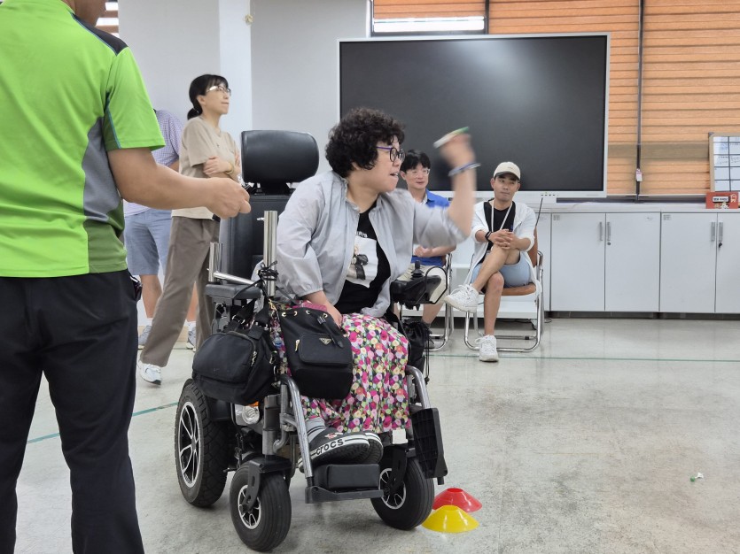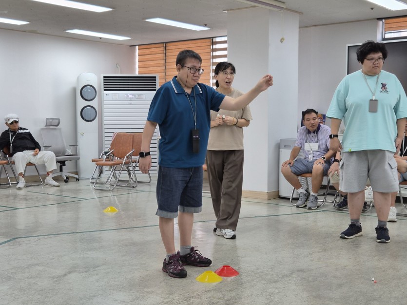 3주간의 생활체육서비스 강사님들의 휴가가 끝나고 8월의 첫번째 시간이 진행되었음. 휴가철과 더불어 그간 무더위 장마등으로 인하여 지역장애인들의 몸 컨디션과 건강을 우선적으로 체크하고 충분한 준비운동을 통하여 다트양궁을 진행 함. 개인전과 두 명이 팀을 이뤄 팀 전을 진행하면서 오래만에 실전 감각을 익히는 시간을 가졌음. 생활체육은 단순히 전문적인 선수로 육성하기위한 활동이 아닌 일상속에서 장애인 누구나 쉽게 참여할 수 있는 운동으로 꾸준한 신체활동을 통해 건강유지와 질환 예방등의 효과가 있음. 이에 따라 '할수있다' 라는 성취감을 경험하게 되고 개인이 아닌 동료와 함께 참여함으로 목표를 세우고 실천하는 과정이 곧 자립의 연습이기도 함. 생활체육서비스는 장애인이 지역사회에서 비장애인과 동등하게 누려야 할 권리 중 하나이므로 지속적인 활동을 통해 지역사회에서 주체적으로 살아가는 인식을 심어주는 장점이 되기도 하다.