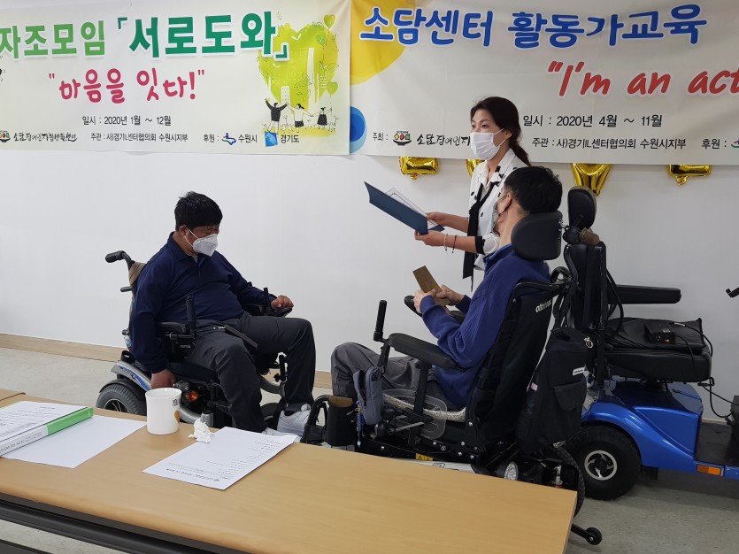 - 전 자조모임 회장 감사장 전달식