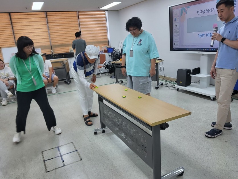 초성게임, 딱지치기, 그림으로 과자 맞추기 , 병뚜껑 날리기, 탁구공 맞추기, 9.99초 맞추기 손 위에 컵 올리고 떨어뜨리기, 돼지킁킁 등