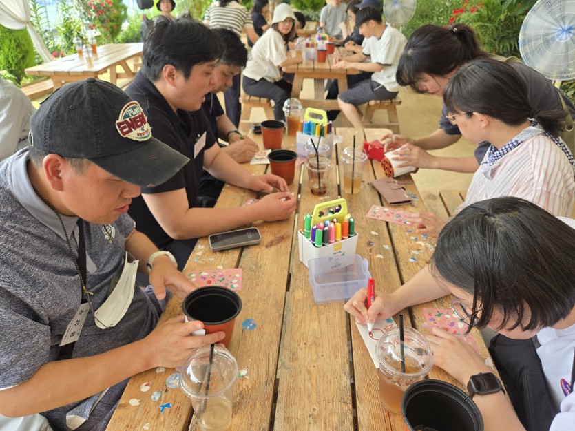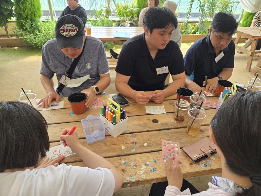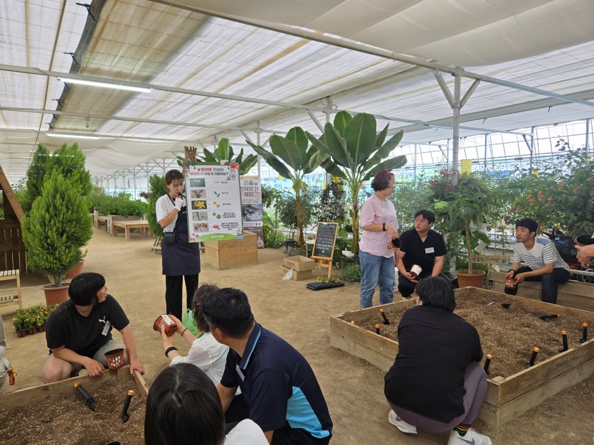 500평의 넓은 유리온실에서 운영되어 여름엔 시원하고 겨울에도 체험 가능하여 다양한 체험 활동과 휴양 공간을 제공하는 곳에서의 체험노동자들이 한적한 체험시설 내에서 토끼‧거북 이 먹이주기, 미니 낚시, 화분만들기 등 다채로운 체험을 하며 자연과의 교감을 해보고 휴양 공간을 이용하는 좋은 기회가 되었으나 진입로(시골 농로)가 좁고 비포장으로 진입에 다소 어려움이 있었고 휠체어장애인노동자가 화장실에 가고 싶었으나 체험시설내에 장애인전용 화장실이 마련되어있지 않아 근처에 쇼핑몰로 이동하는 일이 있었음. 시설 쪽에서 화장실을 설치할 때 전동휠체어가 들어가는 공간을 마련했으면 좋겠다는 아쉬움이 듬.