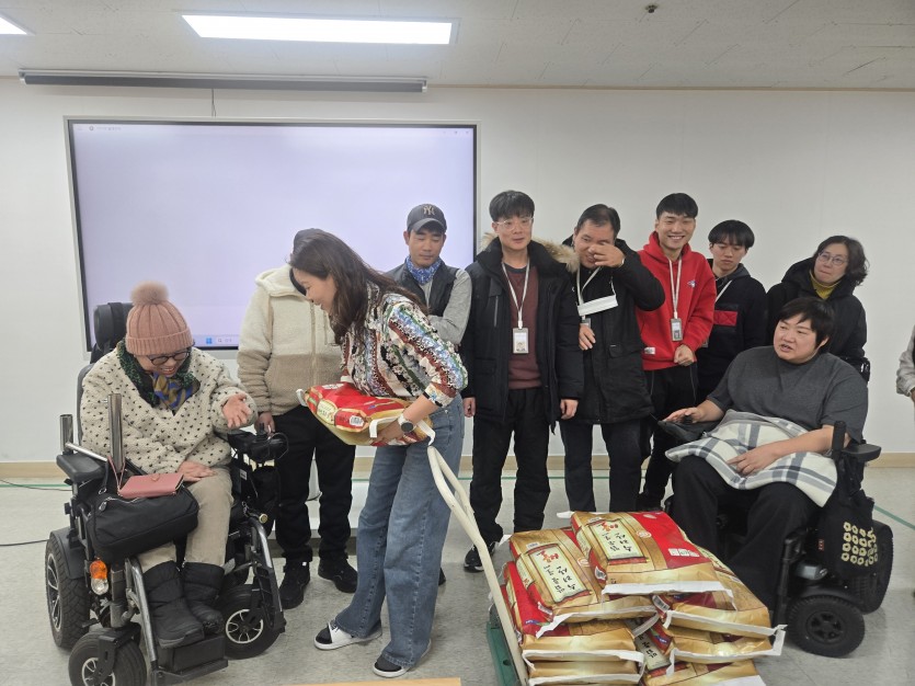 1224 수원시자원봉사센터 " 사랑의 쌀 " 후원받았어요. 페이지 정보 작성자 소담센터 댓글 3건 조회 107회 작성일 25-12-26 15:41 본문 지역 중증장애인 주민들에게 배분하여 따뜻한 사랑의 온도를 나누어드렸습니다. 목록 이전글1230 시의원과 함께하는 무장애 버스정류장 정책토론회 25.12.30 다음글1224 2025 소담권리중심일자리 종무식 ! 25.12.26 댓글목록 댓글목록 김기태님의 댓글 김기태 작성일 25-12-26 16:06 오늘 소담센터 에서 쌀 줘서요. 그리고 맛있는거 먹고 인권 영화 봤어요 ㅋㅋ 롱고커피에서 커피 메뉴판 드려서요 보람찬 하루 되었어요. 답변 삭제 오늘 소담센터 에서 쌀 줘서요. 그리고 맛있는거 먹고 인권 영화 봤어요 ㅋㅋ 롱고커피에서 커피 메뉴판 드려서요 보람찬 하루 되었어요. 정석민님의 댓글 정석민 작성일 25-12-28 22:17 소담센터에서 쌀 선물도 받고 영화보고 맛있는 간식도 먹고 든든했어요~ 답변 삭제 소담센터에서 쌀 선물도 받고 영화보고 맛있는 간식도 먹고 든든했어요~ 이영숙님의 댓글 이영숙 작성일 25-12-30 07:05 생각지도 쌀선물 받았다 너무나 기쁘고 감사하다 나도 받아스니 남에게 기쁨을 줘야지~~~ 답변 삭제 생각지도 쌀선물 받았다 너무나 기쁘고 감사하다 나도 받아스니 남에게 기쁨을 줘야지~~~