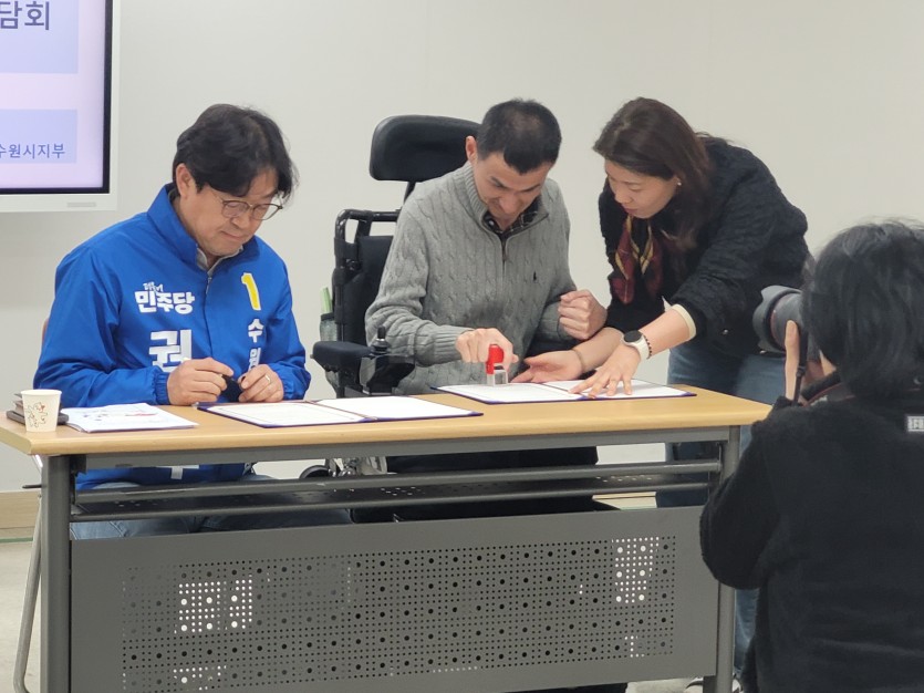 0402 정책간담회 페이지 정보 작성자 소담센터 댓글 1건 조회 14회 작성일 26-04-03 14:27 본문 지방선거 권혁우 수원시장 예비후보와 함께 장애인 권리 예산 및 정책 보장 간담회를 가졌습니다. 목록 다음글0320 독서심리 26.03.27 댓글목록 댓글목록 김기태님의 댓글 김기태 작성일 26-04-03 18:53 지방선거 권혁우 의원님 소담 센터 방문 했다. 대화 나눈고 이야기들 했다. 인사 하고 악수 하고 단체 사진 찍어다. 내이름 보여줘다. 답변 삭제 지방선거 권혁우 의원님 소담 센터 방문 했다. 대화 나눈고 이야기들 했다. 인사 하고 악수 하고 단체 사진 찍어다. 내이름 보여줘다.
