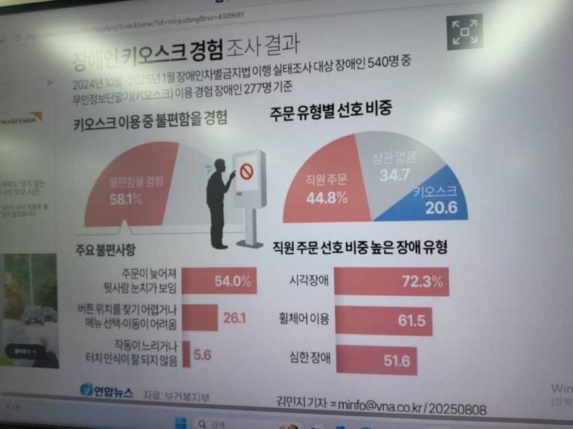지난 8월 28일 정부는 장애인차별금지법 시행령 일부개정령안을 입법 예고하였습니다. 키오스크 접근성과 관련하여 소상공인과 테이블오더형 소형제품을 설치·운영하는 사업장에 대해 완화된 의무를 적용하기 위함이라고 합니다.
