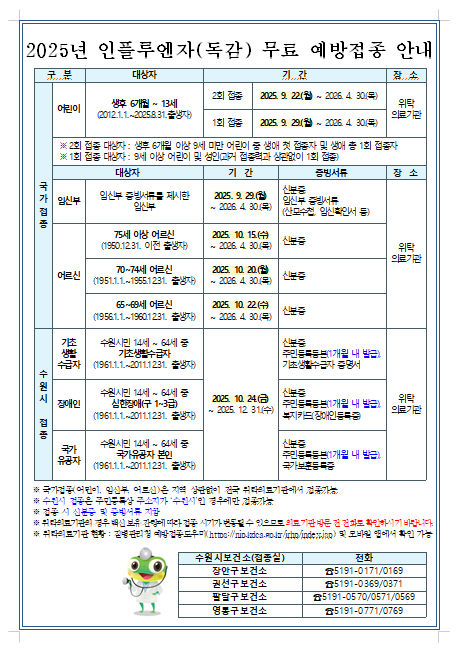 1017 2025년 인플루엔자 ( 독감) 예방접종 안내 페이지 정보 작성자 소담센터 댓글 0건 조회 82회 작성일 25-10-17 14:15 본문 수원시 무료접종 안내드립니다. 목록 이전글1017 발달장애인의 '일할 권리'를 다룬『월요일의 윤슬』 북토크 개최 25.10.17 다음글0903 꽃다지 - 바위처럼 (1994). 가사 25.09.03 댓글목록 댓글목록 등록된 댓글이 없습니다.