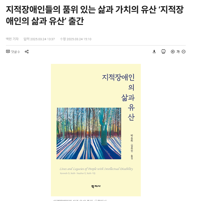 0328 지적장애인들의 품위 있는 삶과 가치의 유산 ‘지적장애인의 삶과 유산’ 출간 페이지 정보 작성자 소담센터 댓글 0건 조회 189회 작성일 25-03-28 16:40 본문 https://www.ablenews.co.kr/news/articleView.html?idxno=219835 목록 이전글0411 04월 14일 권리중심 일자리 운영 실태 및 개선 방안 연구 결과 발표회가 열립니다. 25.04.11 다음글0210 우체국, 저소득 장애인 암보험 지원‥3월 7일까지 접수 25.02.10 댓글목록 댓글목록 등록된 댓글이 없습니다.