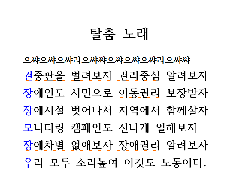 우리의 권리를 노래와 몸짓으로 표현하는 문화예술직무입니다. 함께해요.
