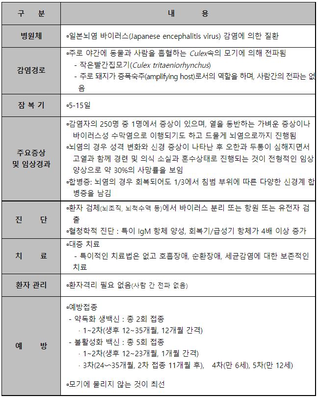 전국 일본뇌염 '경보' 발령에 따른 예방수칙 안내