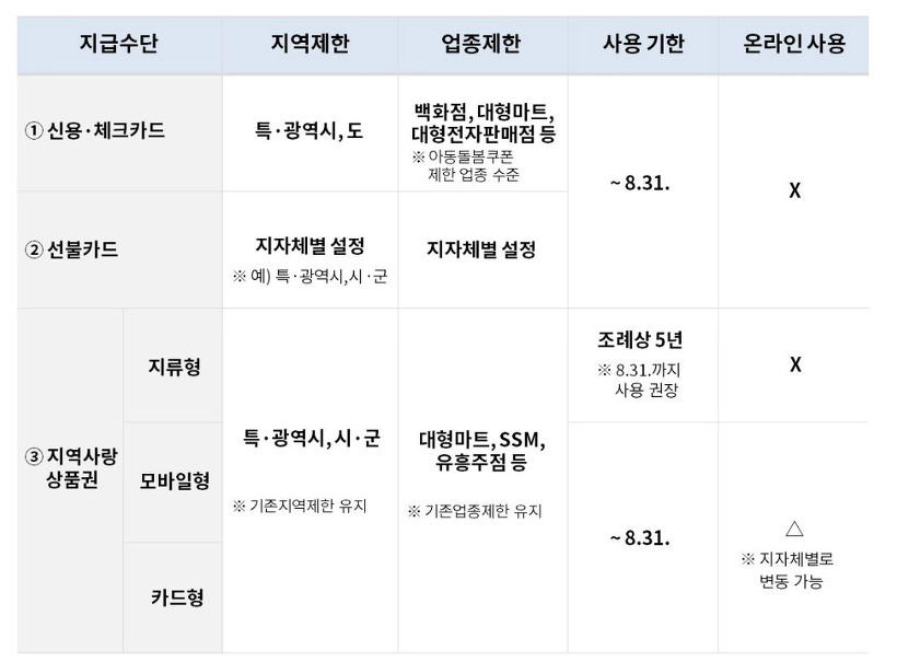※ 지역사랑상품권·선불카드의 경우 구체적 신청일정·방법 등은 지자체별로 일부 변동될 수 있습니다.