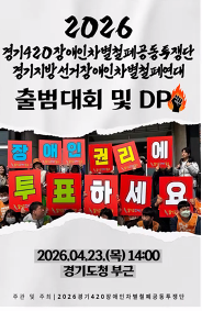 0421 경기 420 장애인차별철폐의 날 공동투쟁단 및 경기 지방선거 장애인챠별철폐연대 출범대회 및 DP 페이지 정보 작성자 소담센터 댓글 0건 조회 10회 작성일 26-04-21 18:41 본문 1234 목록 다음글0413 환자의 말을 듣는 일은 왜 어려운가 [.txt] 26.04.21 댓글목록 댓글목록 등록된 댓글이 없습니다.