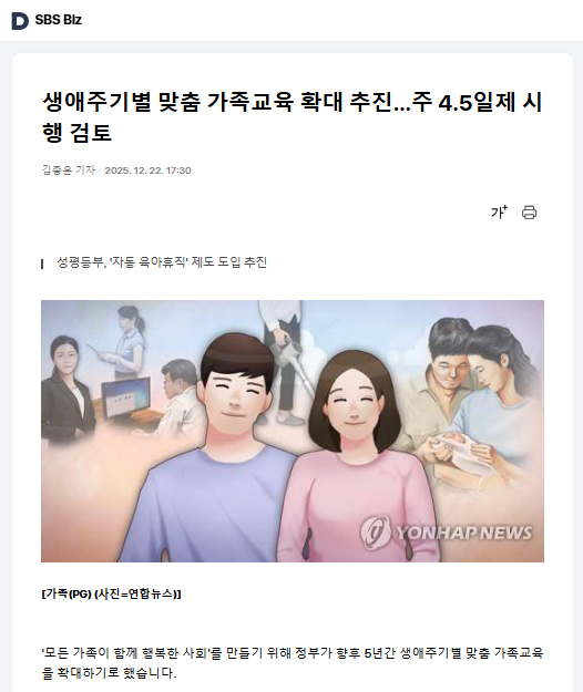 1224 생애주기별 맞춤 가족교육 확대 추진…주 4.5일제 시행 검토 SBS Biz
