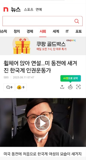 0812 휠체어 앉아 연설…미 동전에 새겨진 한국계 인권운동가 SBS