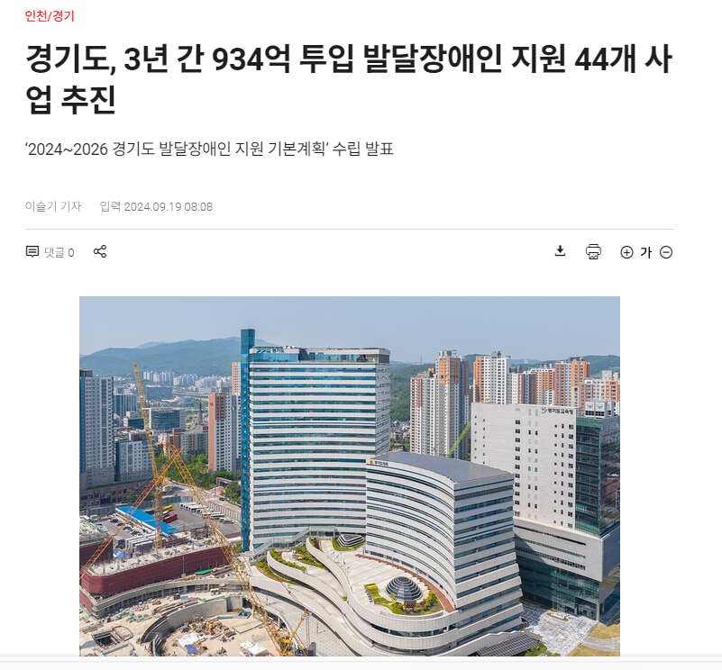 0920 경기도, 3년 간 934억 투입 발달장애인 지원 44개 사업 추진 ‘2024~2026 경기도 발달장애인 지원 기본계…