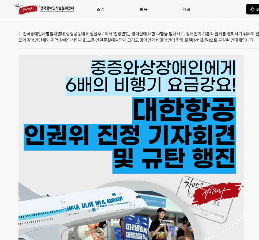0807 중증와상장애인에게 6배 요금부과 대한항공 규탄 기자회견 페이지 정보 작성자 소담센터 댓글 0건 조회 357회 작성일 24-08-09 14:19 본문 https://sadd.or.kr/data/?bmode=view&idx=63787791&back_url=&t=board&page=1 목록 이전글0821 '가슴 철렁' 장애인들에겐 비좁은 수원시청 휠체어리프트 24.08.21 다음글0719 윤경선 수원시의원 ' 휠체어 이용 장애인과 간담회 ' 진행 24.07.22 댓글목록 댓글목록 등록된 댓글이 없습니다.