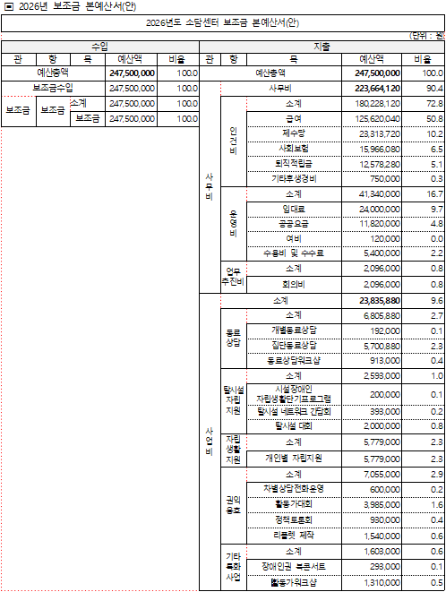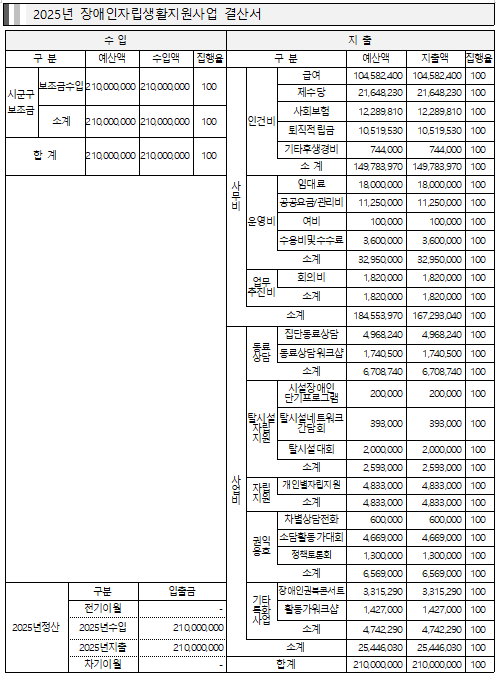 사)경기장애인자립생활센터협의회 수원시지부 IL 2025결산서와 2026본예산서를 첨부와 같이 공고합니다.