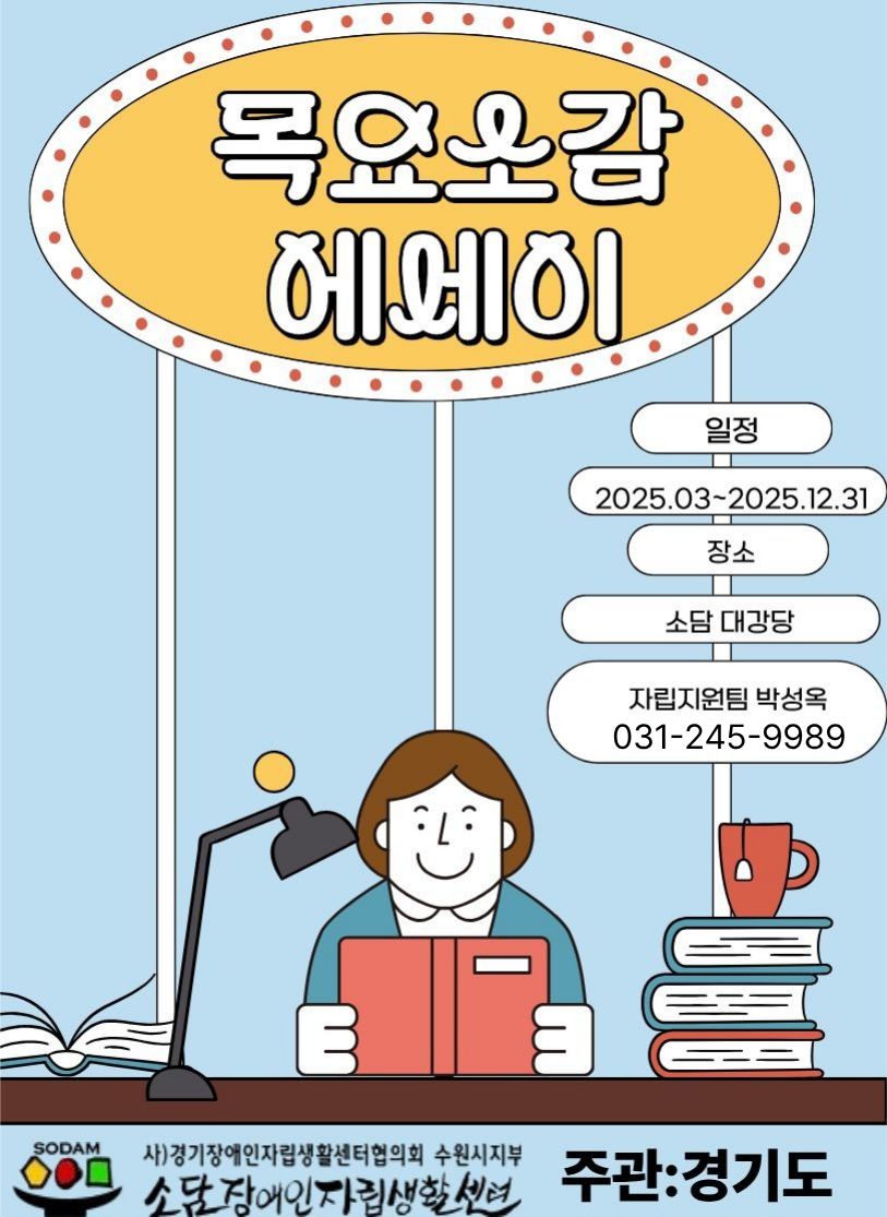 0220 소감문 에세이 참여자 모집 페이지 정보 작성자 소담센터 댓글 0건 조회 54회 작성일 25-02-20 22:07 본문 지역 장애인들의 많은 참여바랍니다. 목록 이전글0220 장애인식개선교육 참여자 모집 25.02.20 다음글0220 지역사회 캠페인 참여자 모집 25.02.20 댓글목록 댓글목록 등록된 댓글이 없습니다.