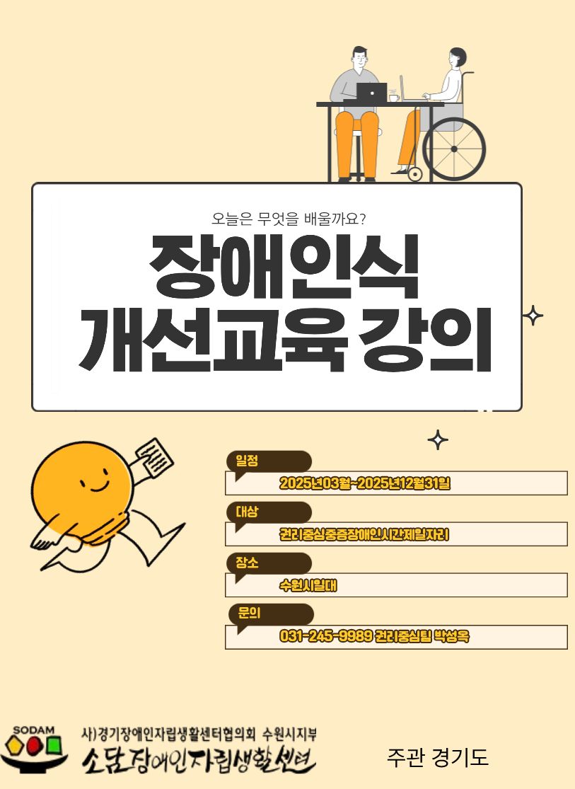 0220 장애인식개선교육 참여자 모집 페이지 정보 작성자 소담센터 댓글 0건 조회 59회 작성일 25-02-20 22:08 본문 지역 장애인들의 많은 참여바랍니다. 목록 이전글0220 미디어교육 참여자 모집 25.02.20 다음글0220 소감문 에세이 참여자 모집 25.02.20 댓글목록 댓글목록 등록된 댓글이 없습니다.