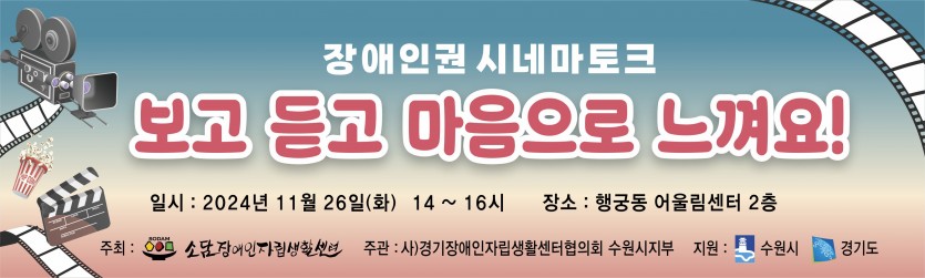 2024년 11월 26일 오후 2시 행궁동 어울림센터에서 "소담 시네마토크"를 개최합니다.