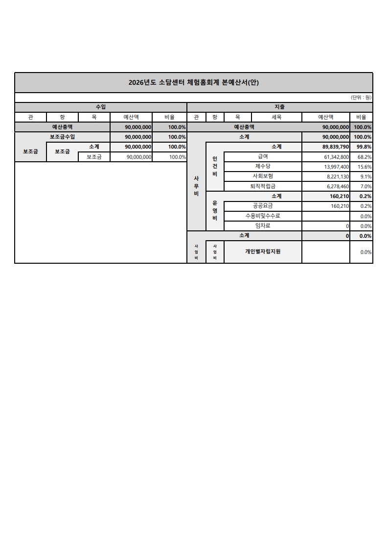 사)경기장애인자립생활센터협의회 수원시지부 체험홈 2026 (가)예산서를 첨부와 같이 공고합니다.