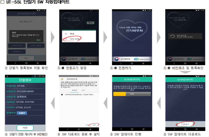 - 업그레이드 완료 전 단말기 강제 종료 및 다른 작업 자제