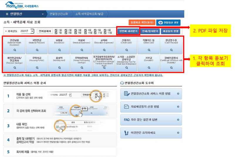 연말정산 간소화 사이트에서 소득ㆍ세액공제 자료를 PDF파일로 다운로드하여 제출
