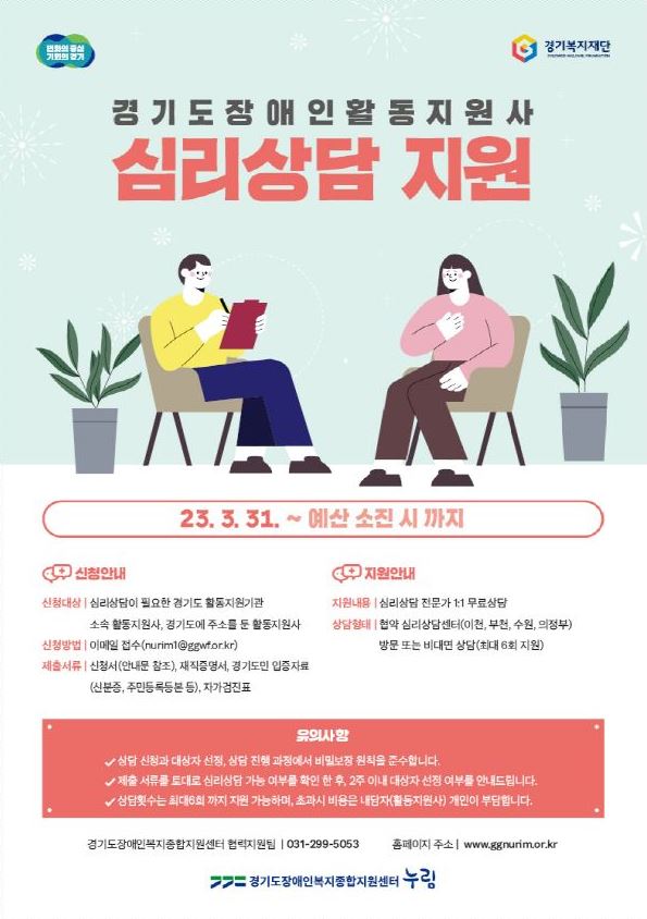 경기도 장애인 활동지원사 심리상담 지원 사업 안내