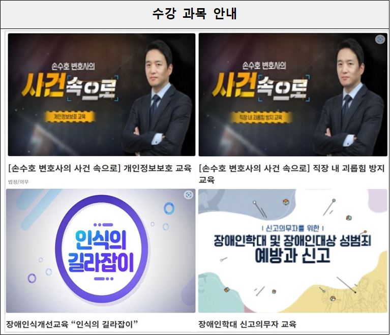 ⑬ “[손수호 변호사의 사건 속으로] 개인정보보호교육”을 수강신청하여 학습을 완료합니다.
