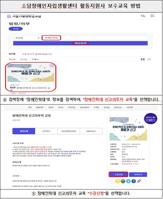 ⑤ 장애인학대 신고의무자 교육 “수강신청”을 선택합니다.