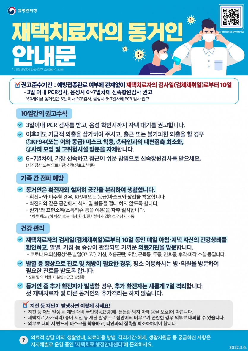 코로나 오미크론 확진자 재택치료 방법 및 동거인 생활수칙