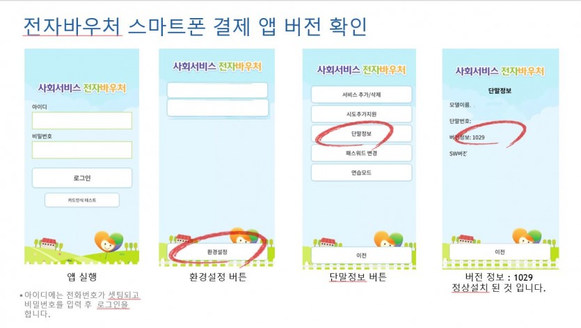 - 설치 완료 후 메뉴 → 단말정보 → 결제버전 확인 必,