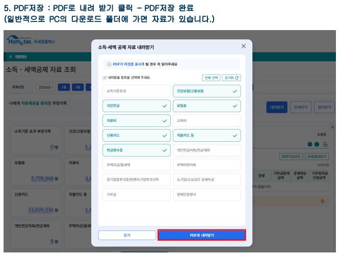 ⓑ 연말정산 간소화 사이트(홈택스)에서 소득ㆍ세액공제 자료를 PDF파일로 다운로드하여 제출(26.01.15~조회가능)